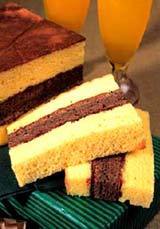 This is a homemade traditional cake of Surabaya. It has 3 layers of cakes in which 2 of it are butter taste and 1 of it is chocolate taste.